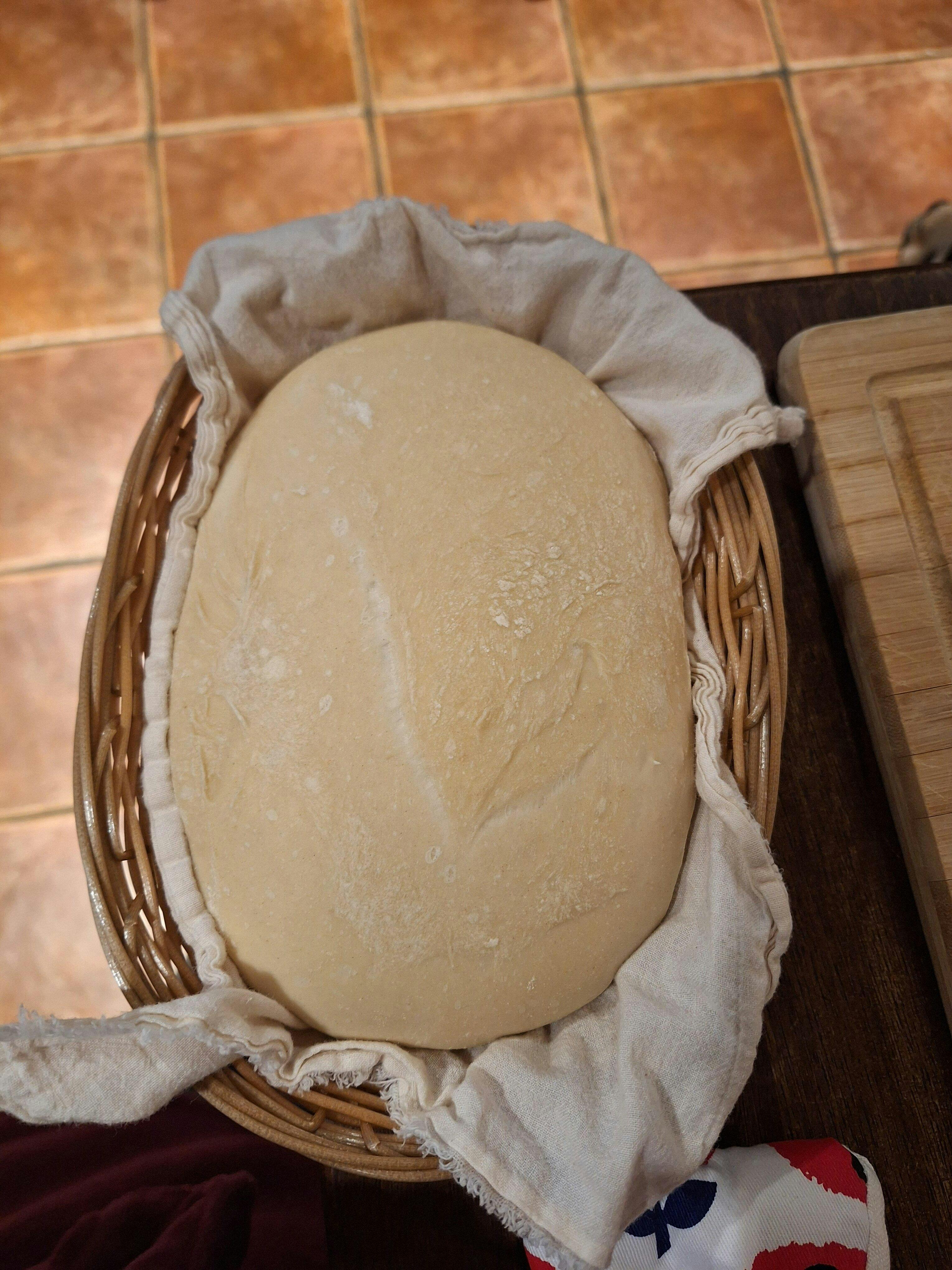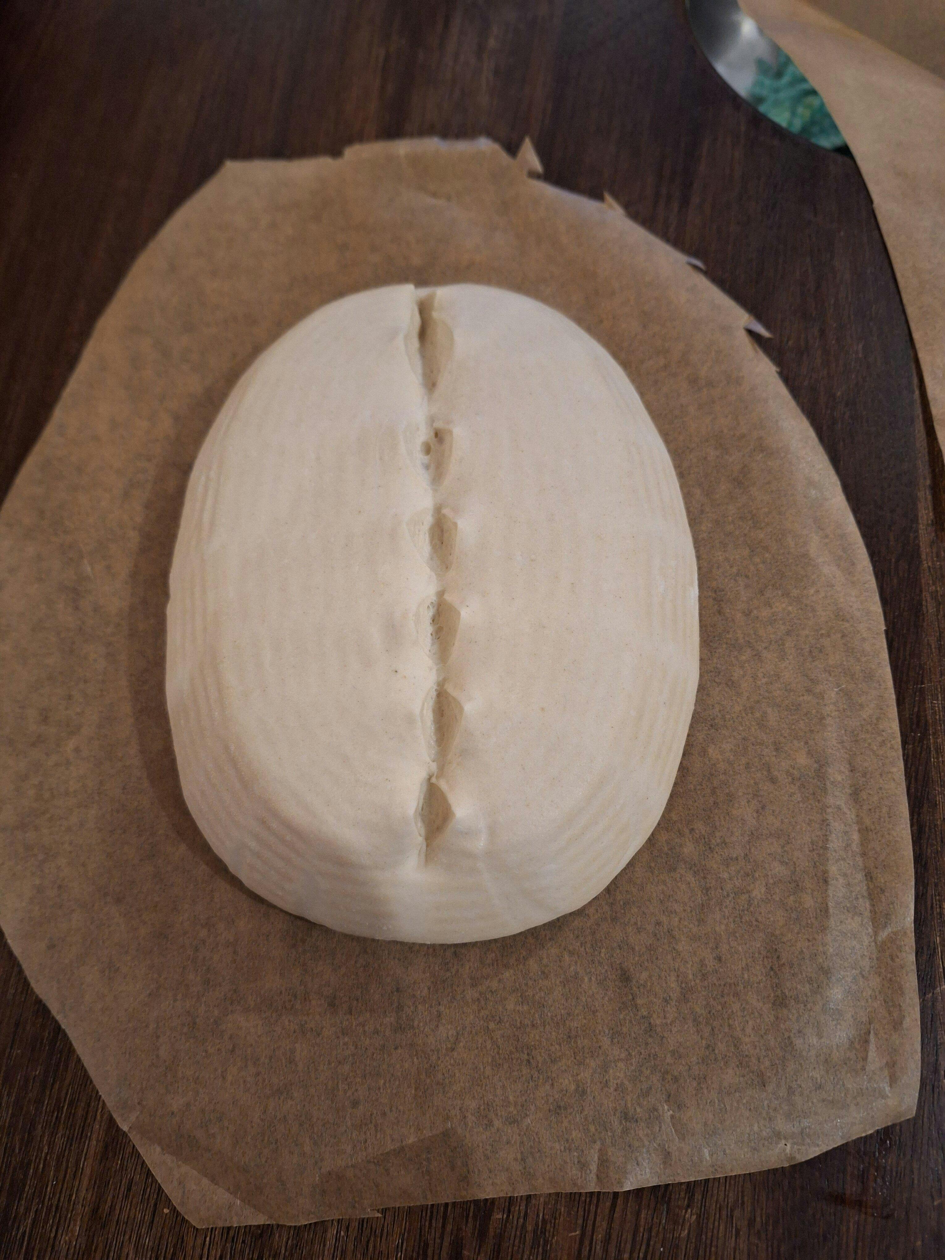 A shaped sourdough dough, prepared by you, ready to bake in your own oven the following morning. -